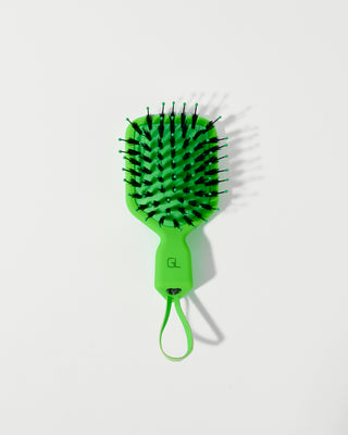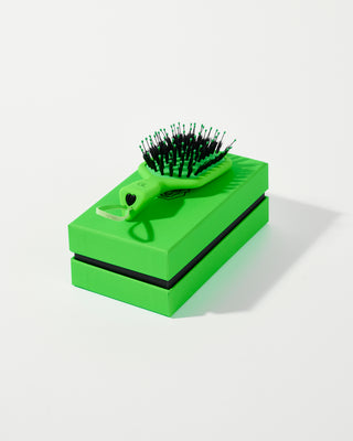 Hochwertige Materialien, grüne Farbe, exklusives Design der Greta Lion Haarbürste.