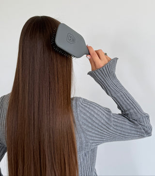 Bürsten Sie Ihr Haar mindestens zweimal am Tag mit sanften, kontinuierlichen Bewegungen. Beginnen Sie an den Haarspitzen und arbeiten Sie zur Kopfhaut hin. Längere Nylonborsten mit runden Spitzen regen die Blutzirkulation in der Kopfhaut an und helfen, Haare jeder Länge, Art und Beschaffenheit zu entwirren. Die natürlichen Wildschweinborsten verteilen das von der Kopfhaut freigesetzte Öl über die gesamte Haarlänge und vervollständigen ein angenehmes Kämmen, verleihen dem Haar einen gesunden Glanz und schützen es vor Haarbruch!