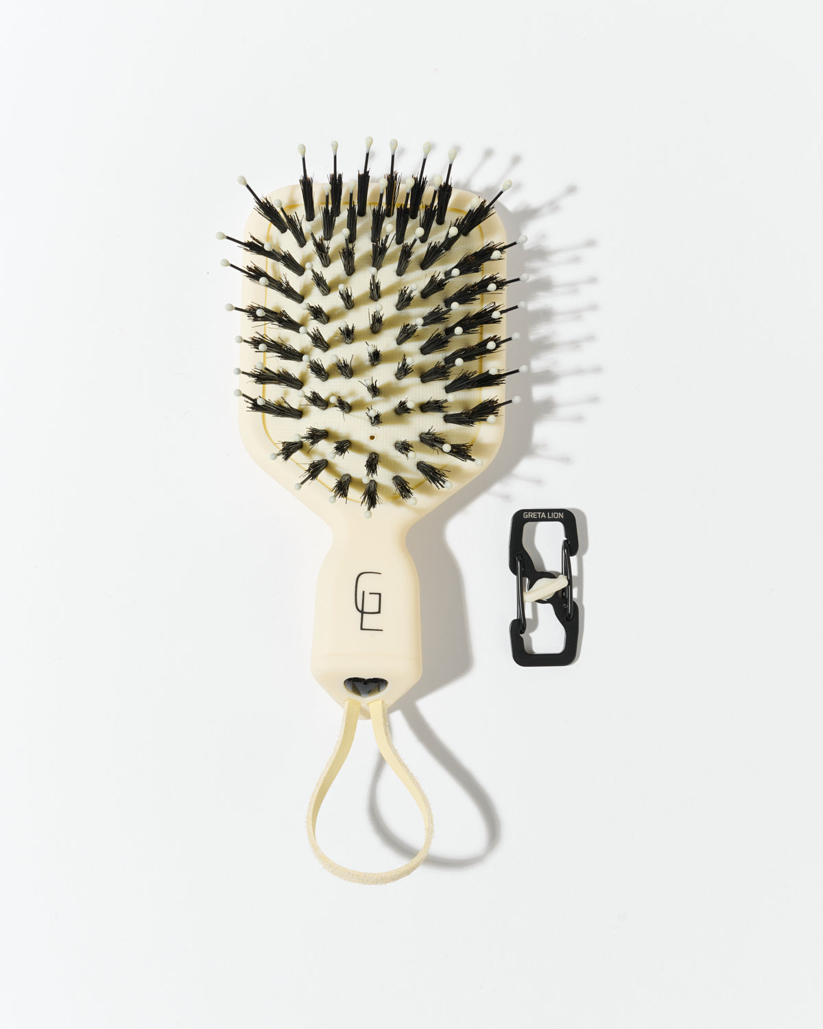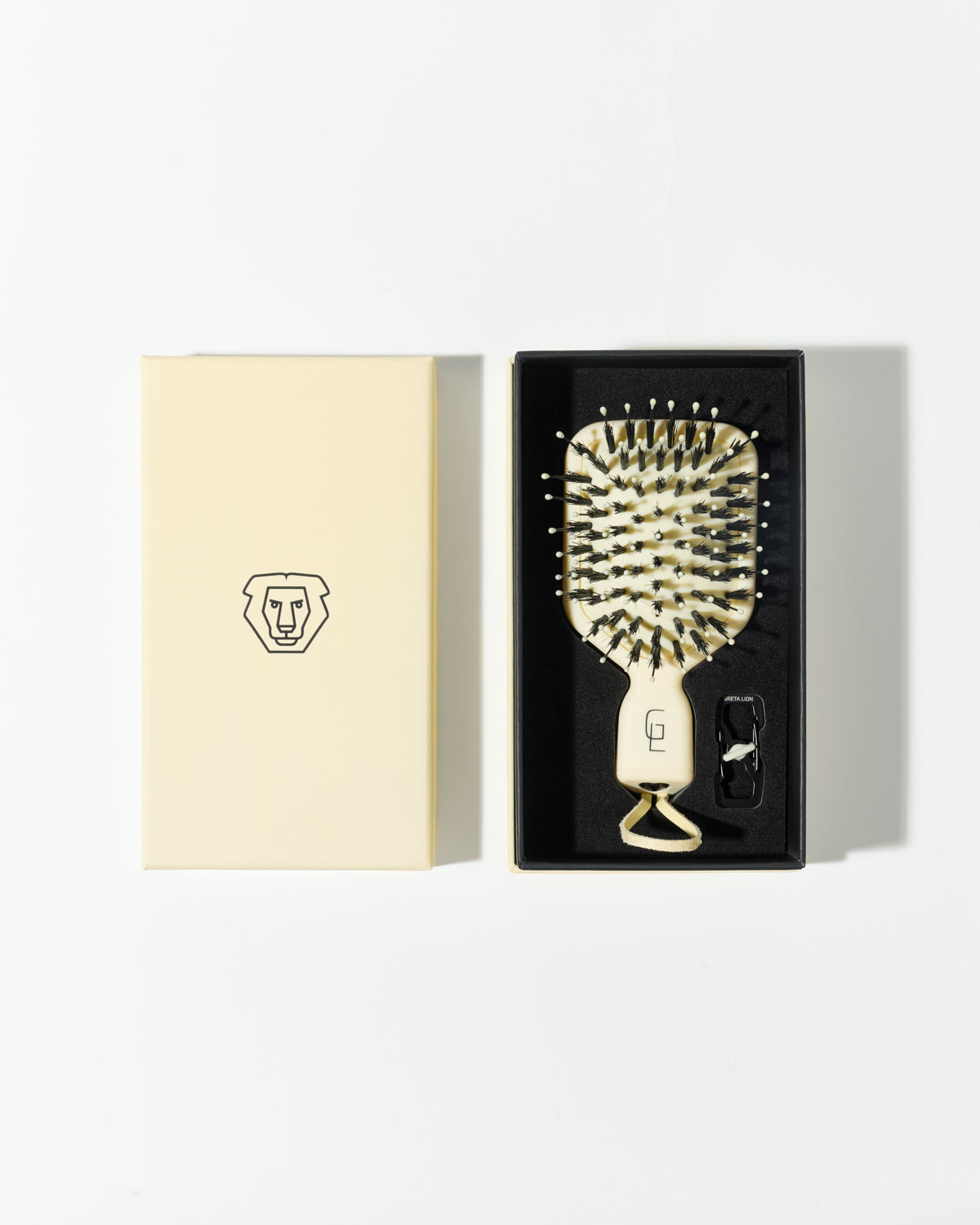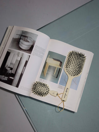Augstas kvalitātes materiāli, pastelkrāsas dzeltenā krāsa, ekskluzīvs dizains Greta Lion matu suka.