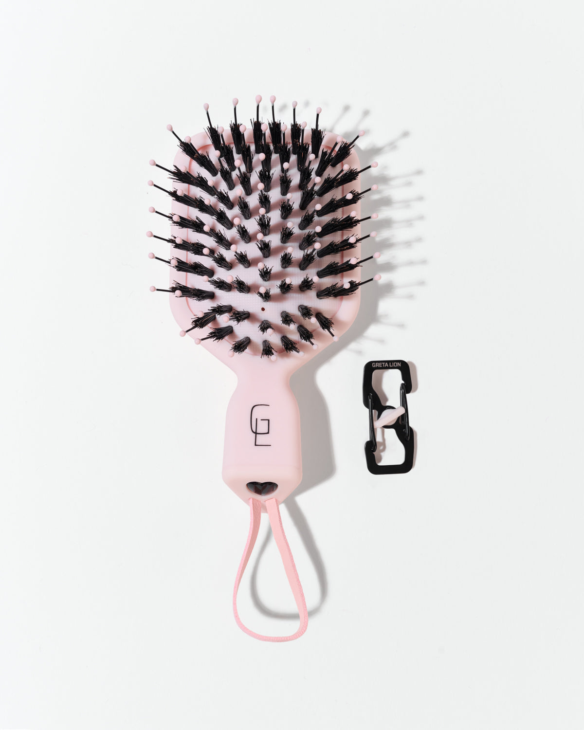 Its convenient size allows you to carry the brush everywhere, making it not only an essential everyday accessory, but also a great choice for travel. The set includes a clip for attaching the brush to your bag or other accessories.