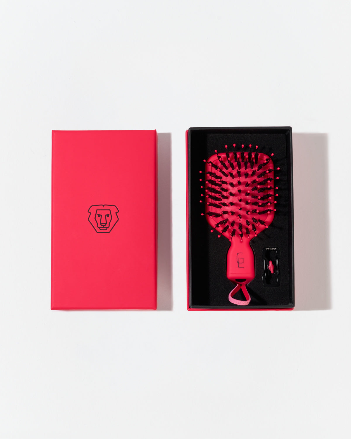 High-quality materials, red color, exclusive design Greta Lion hair brush.