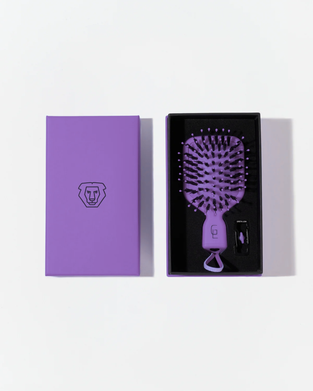 High-quality materials, purple color, exclusive design Greta Lion hair brush.